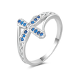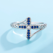 Anel Cruz Celestial em Prata 925 com Zircônias Azuis