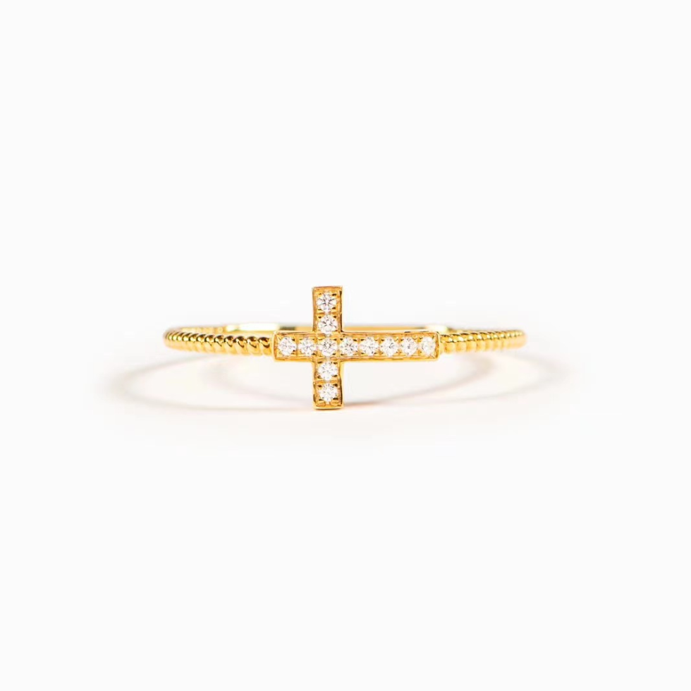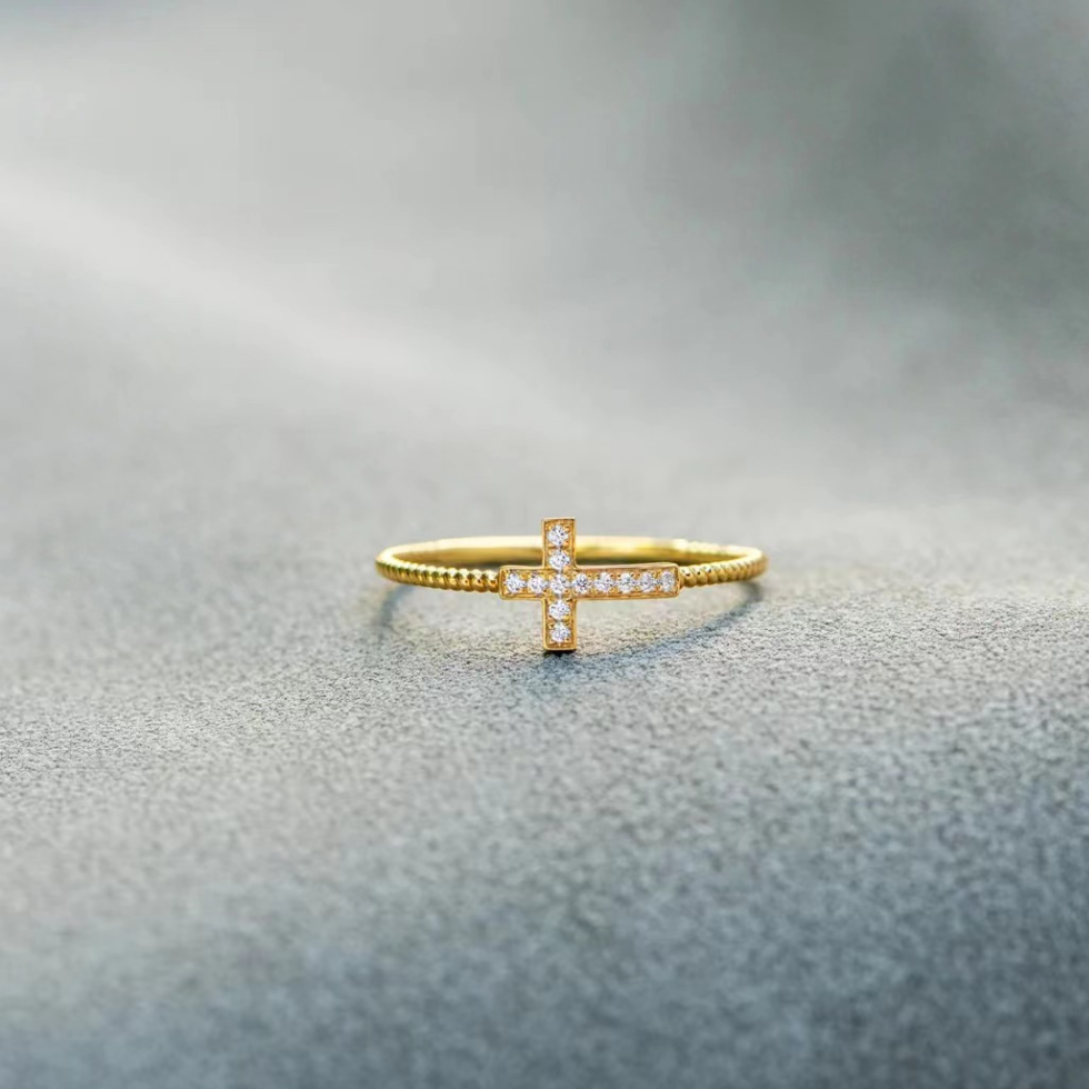 Anel Cruz Dourada da Fé Banhado em Ouro 18K com Zircônias Delicadeza, Brilho e Espiritualidade em uma Só Joia