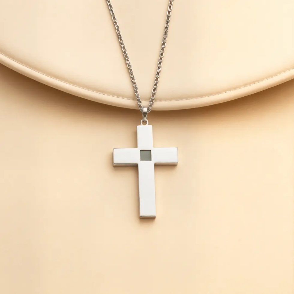 Viva a fé com profundidade através do nosso colar com cruz e Nano Bíblia uma peça cuidadosamente elaborada que vai além da estética.